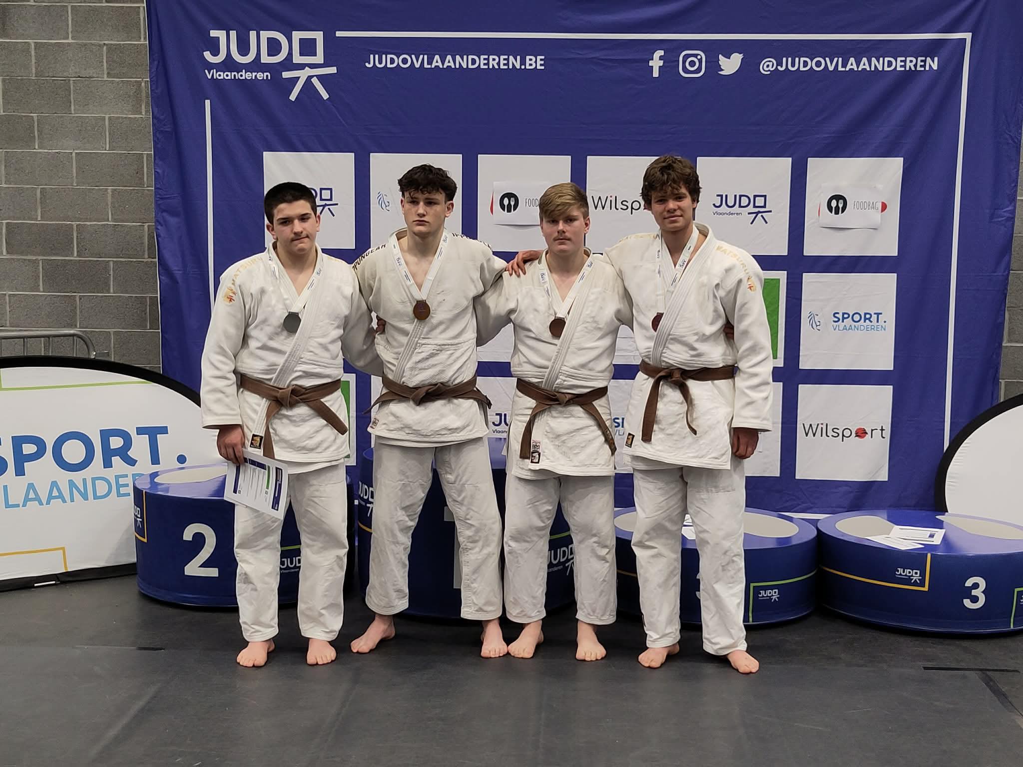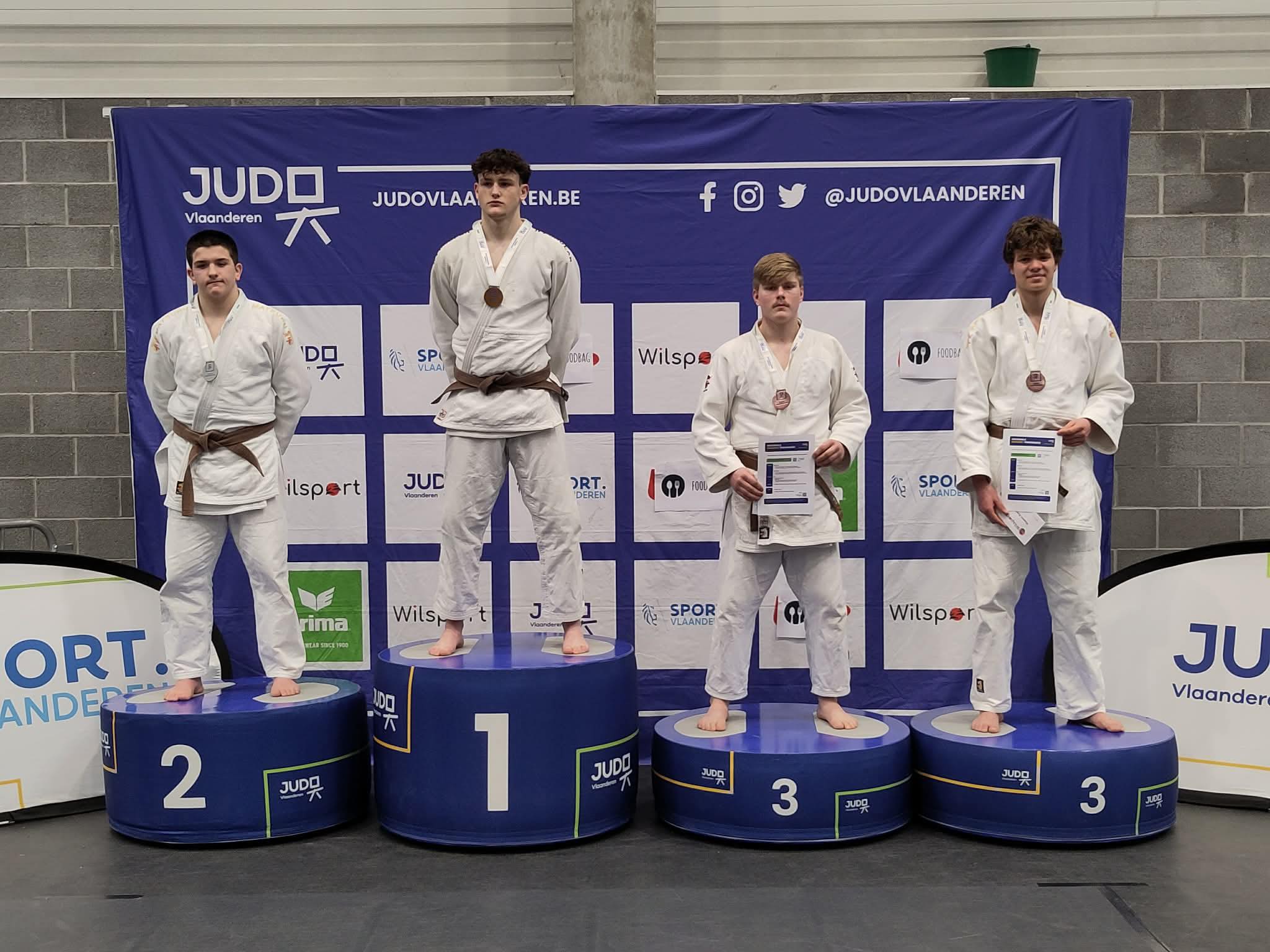 Resultaten dag 2 Vlaams Kampioenschap. Net zoals gisteren kunnen we met trots zeggen dat opnieuw 3 van onze judoka’s doorgaan naar het Belgisch kampioenschap. Proficiat Misha, Vlaams kampioen +90, Aleks, brons +90 en Warre (judo bourgoyen, brons -90. Oscar, – i1 kg en Gabriël wonnen en verloren elk twee kampen. Kampioenschap zal doorgaan volgende week zaterdag en zondag in Tielt.
